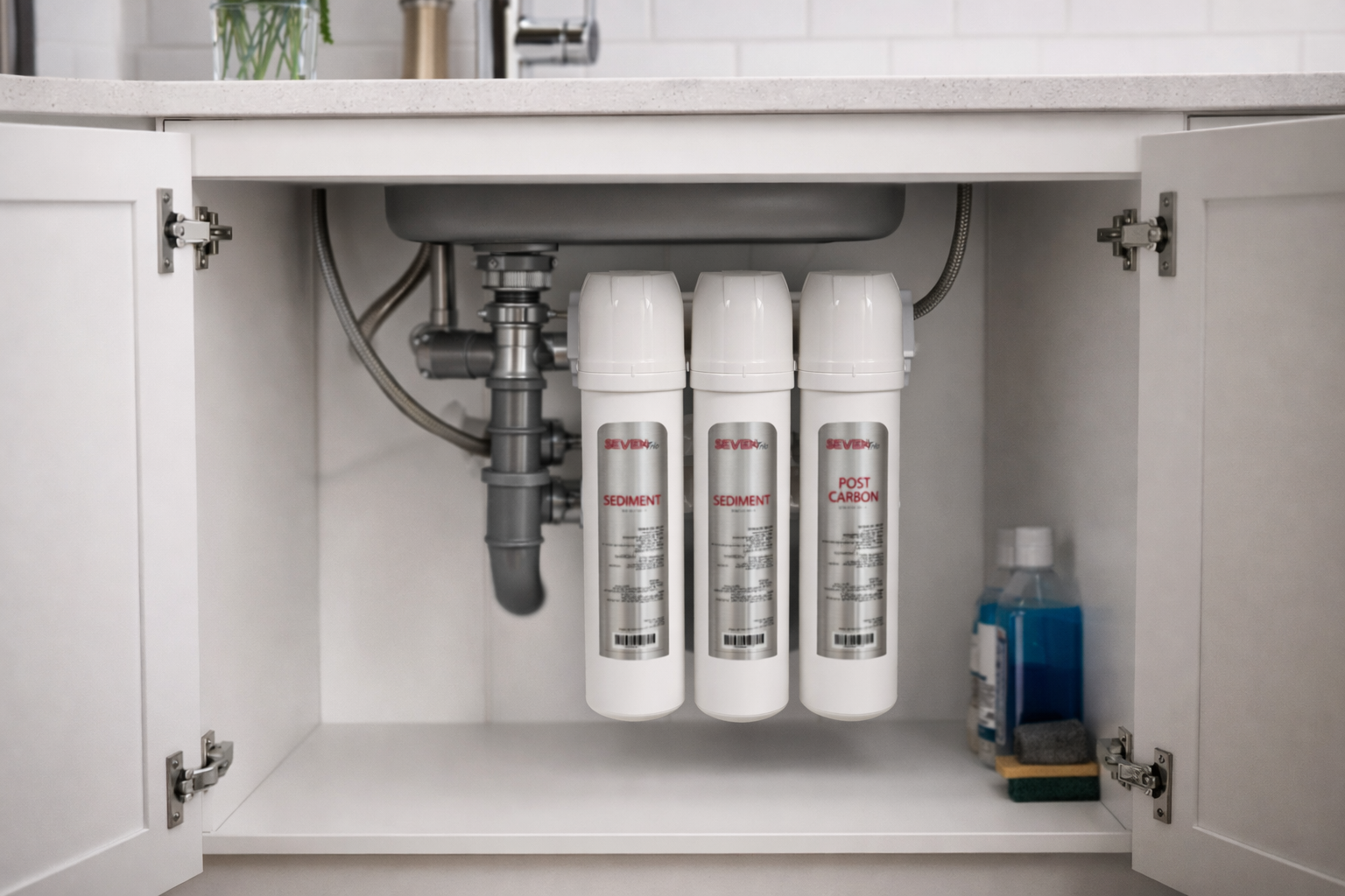 מערכת נוחה, אסטטית וקומפקטית מתחת לכיור שלך.